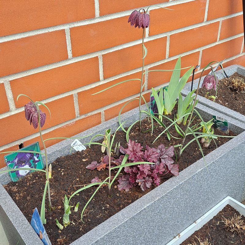 Keväällä 2022 odotin jännityksellä nouseeko ruukuista mitään ja yllätyksekseni suurin osa kasveista selvisi talven yli. Punahattu, jaloängelman pienet taimet ja tarhaviinikärhö eivät nousseet, mutta erityisesti syysvadelma ja kuunliljat kasvoivat edellisvuotta isommiksi. Lisäksi tilanpuutteen vuoksi isoimpaan termoruukkuun istuttamani muutamat kirjopikarililjan sipulit nousivat ja kukkivat.
