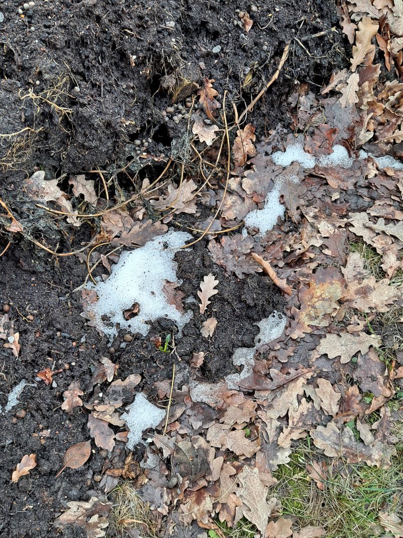 Plussakelit yhdessä niin vesisateen kuin auringon kanssa ovat sulattaneet lumia tällä seudulla varsin tehokkaasti. Etupihan kukkapenkki oli sula jo muutama päivä sitten ja takapihalla oli torstai-iltana enää pienet nokareet lunta.